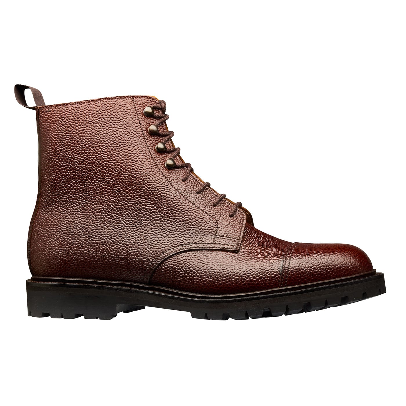 Archie, a higher leg derby boot with a straight toe cap, produced on the famous 228 'Snowdon' last. Made from the robust rust scotch grain with cleated rubber soles and a storm welt for added water resistance.