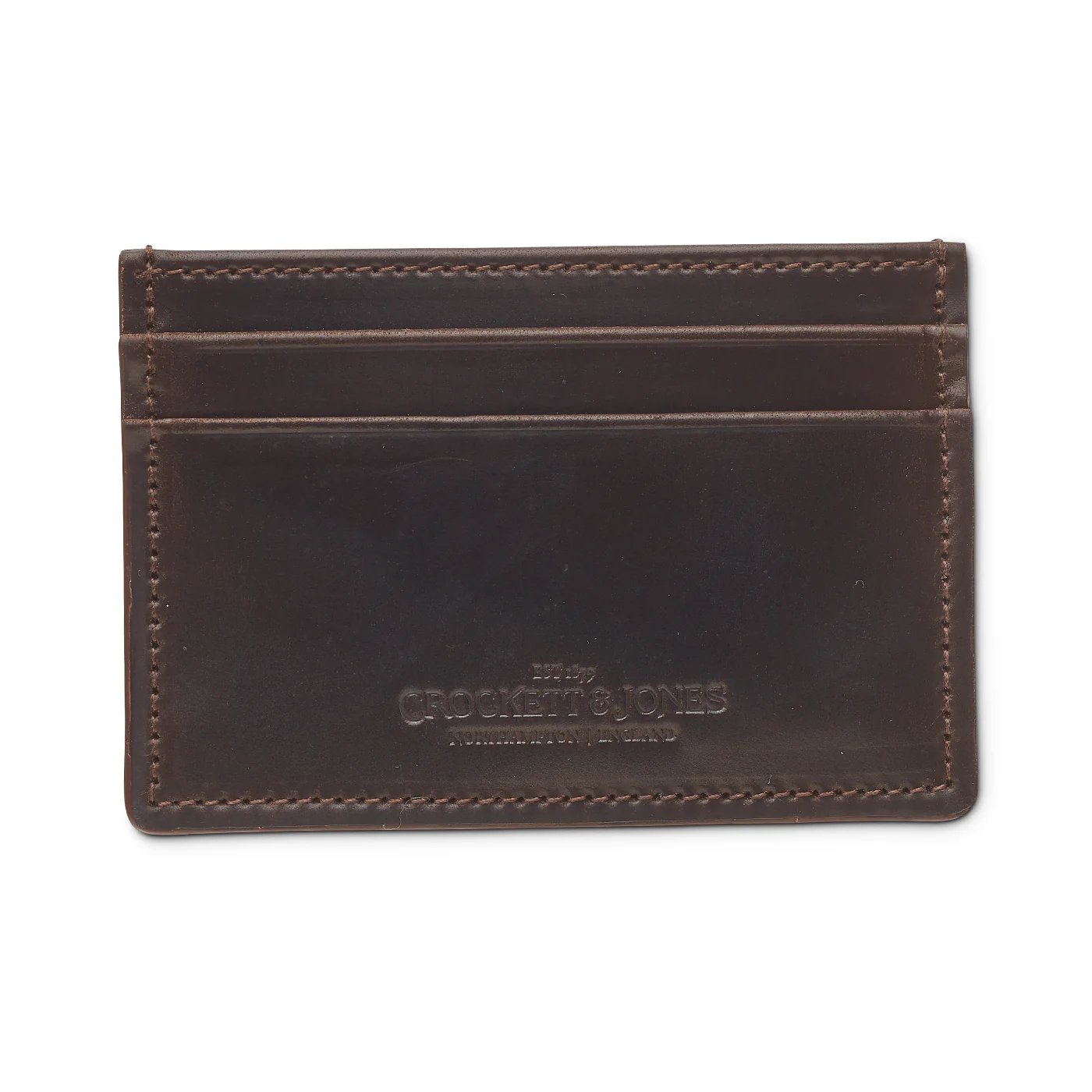 The card holder is our smallest wallet. It features space for four to eight cards with a central pocket for folded notes. Every wallet is fully leather-lined in dark green calf with hand-finished edges. Every stitch is handmade in England.