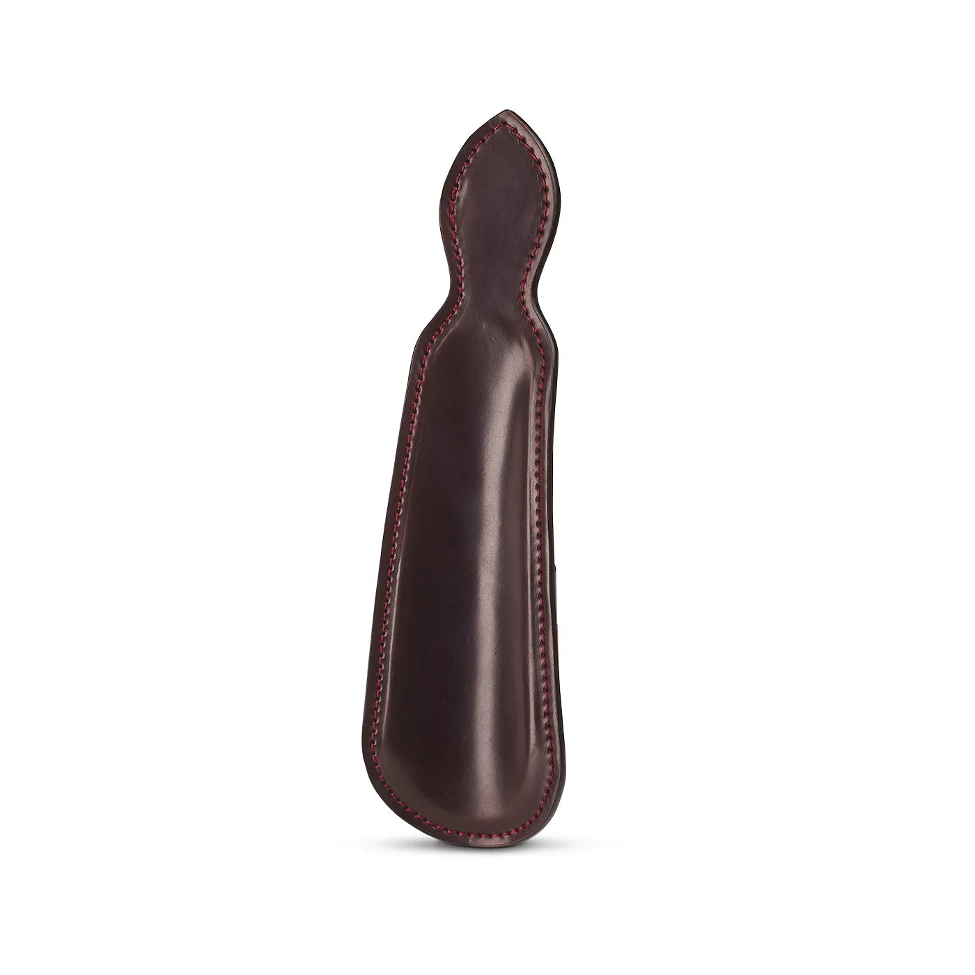 This shoe horn is made using Shell Cordovan from Horween, to exactly complement our Shell Cordovan shoes and boots. Cut in-house, leather sections are sent to specialist producers of leather goods here in the UK. Each piece is made to exacting standards as our partner’s ethos mirrors that of our own, as a producer of some of the finest shoes in the world, made in Northampton, England.