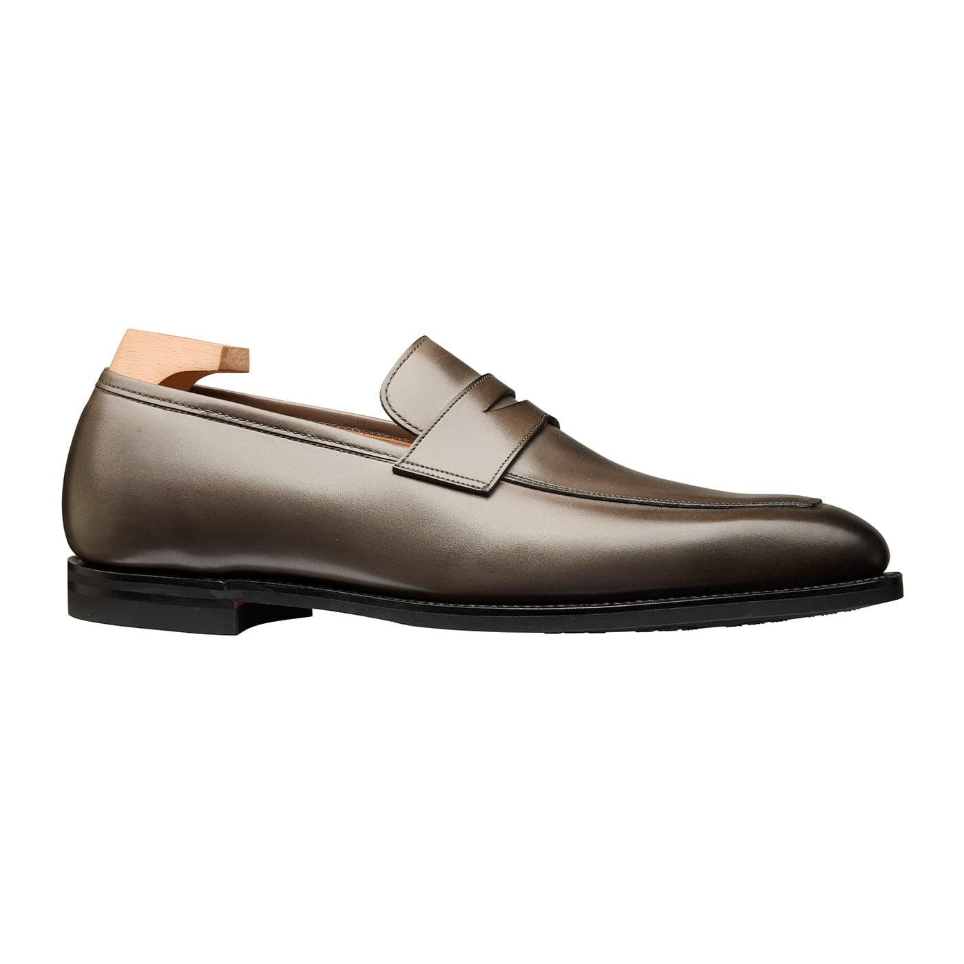 Merton, an apron front penny loafer made from the finest grey burnished calf leather with 'City' rubber soles. From the Men's Main Collection.